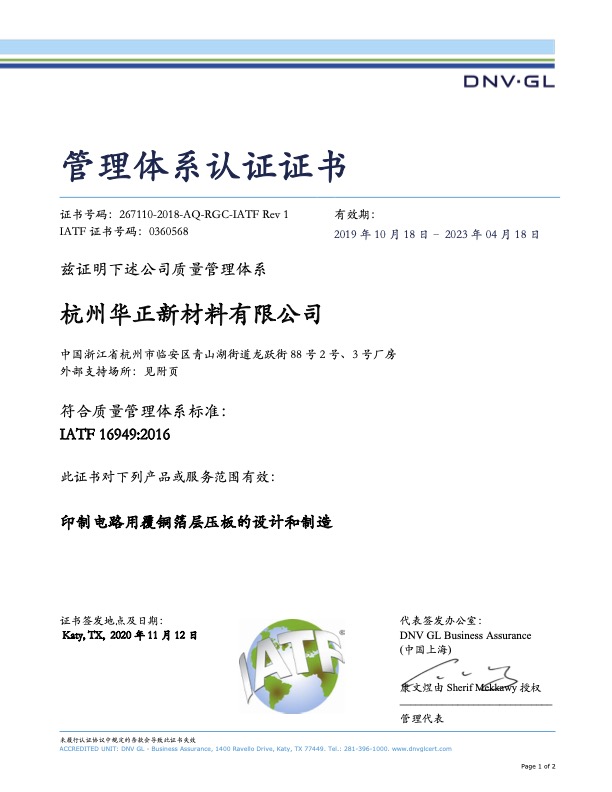 IATF16949【浙江華正】